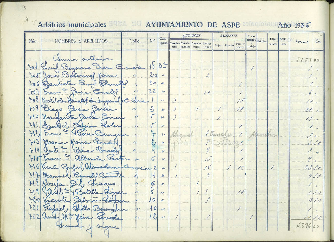 Padrón de personas sujetas al pago de arbitrios municipales, 1936