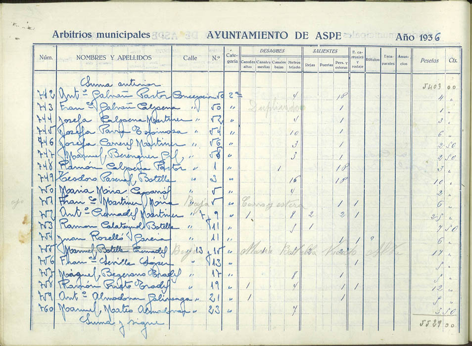 Padrón de personas sujetas al pago de arbitrios municipales, 1936