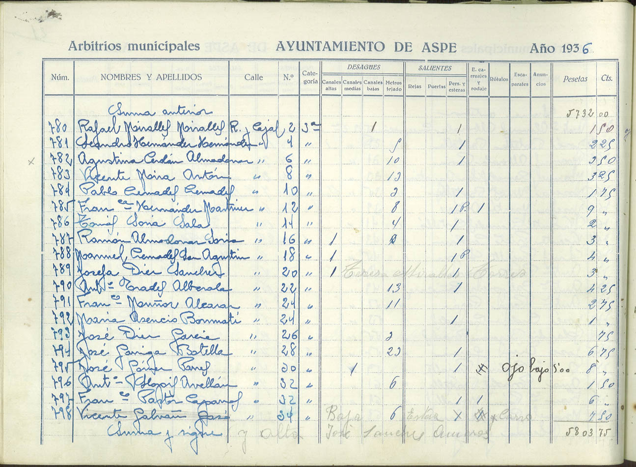 Padrón de personas sujetas al pago de arbitrios municipales, 1936