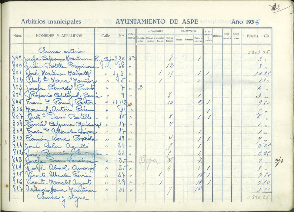 Padrón de personas sujetas al pago de arbitrios municipales, 1936
