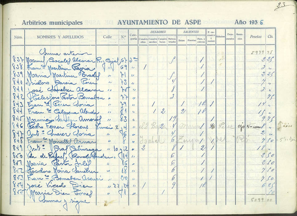 Padrón de personas sujetas al pago de arbitrios municipales, 1936