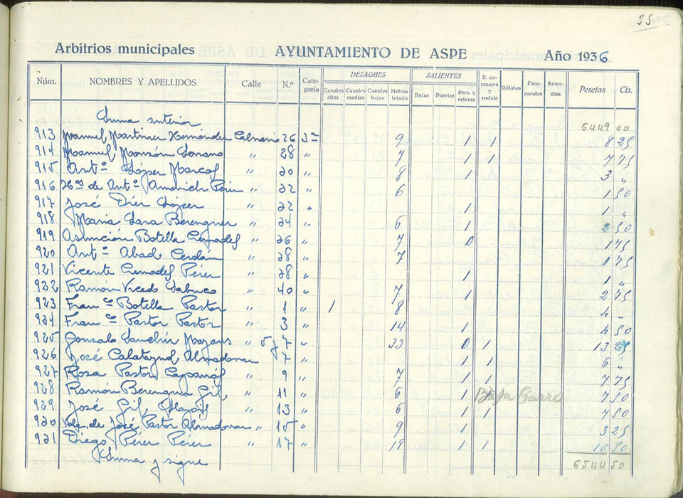 Padrón de personas sujetas al pago de arbitrios municipales, 1936