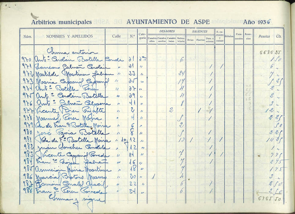 Padrón de personas sujetas al pago de arbitrios municipales, 1936