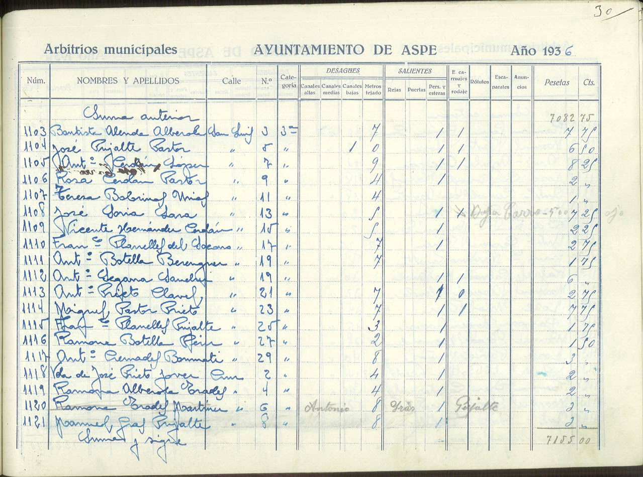 Padrón de personas sujetas al pago de arbitrios municipales, 1936