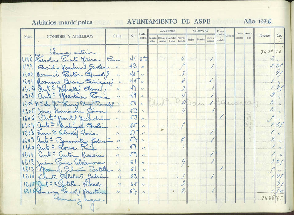 Padrón de personas sujetas al pago de arbitrios municipales, 1936