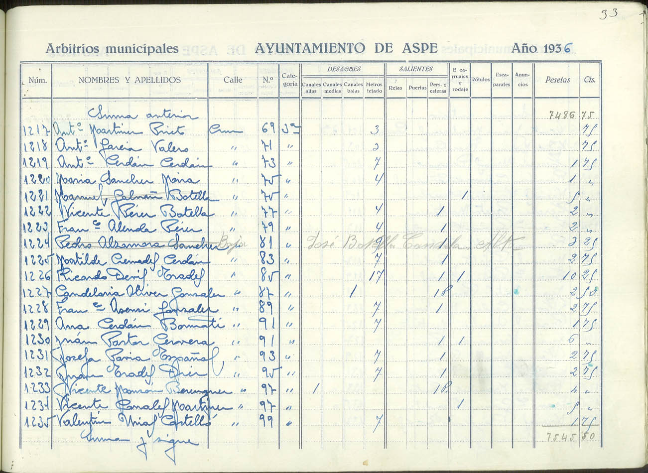 Padrón de personas sujetas al pago de arbitrios municipales, 1936