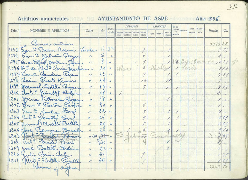 Padrón de personas sujetas al pago de arbitrios municipales, 1936