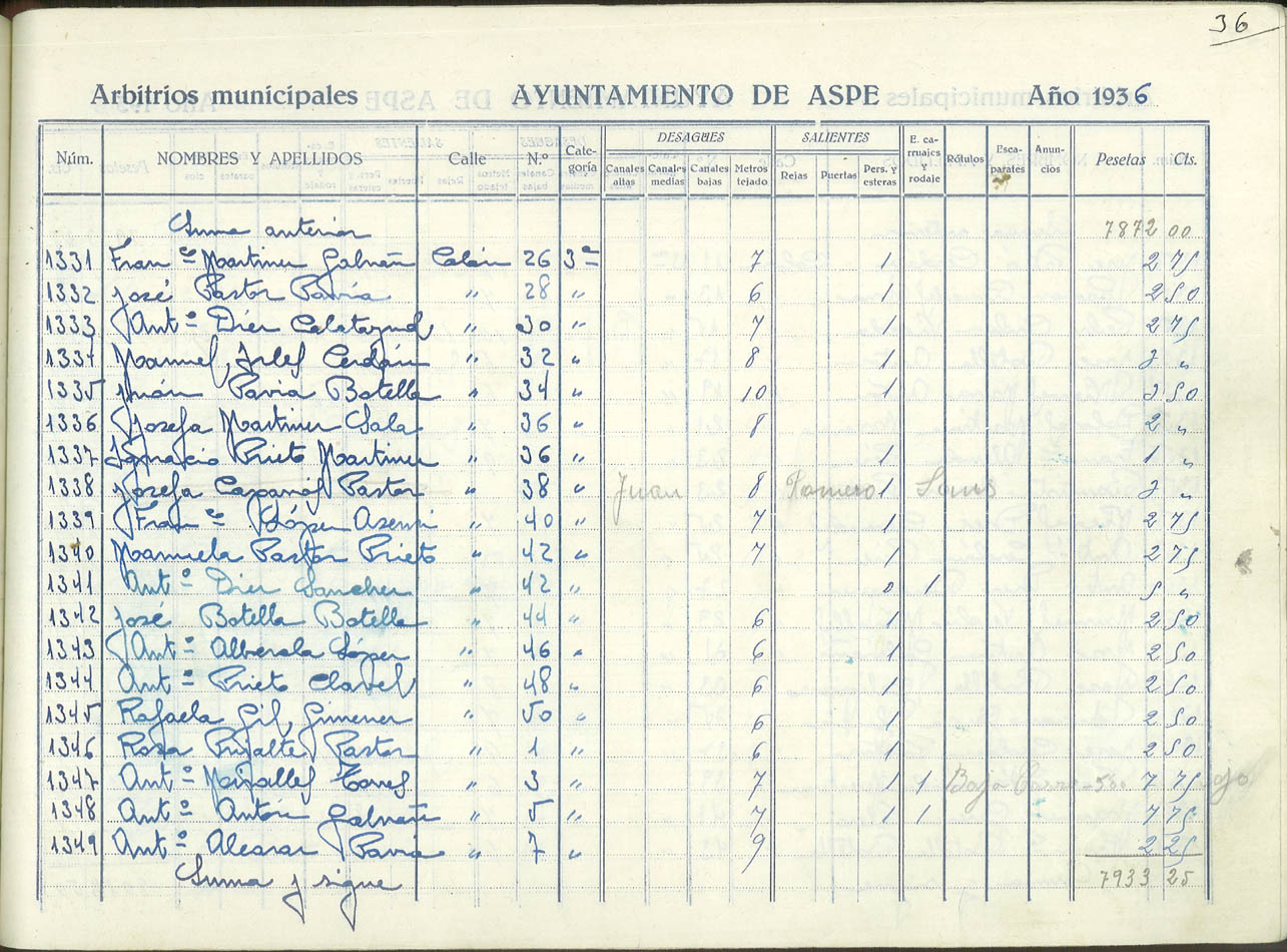 Padrón de personas sujetas al pago de arbitrios municipales, 1936