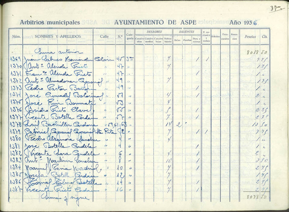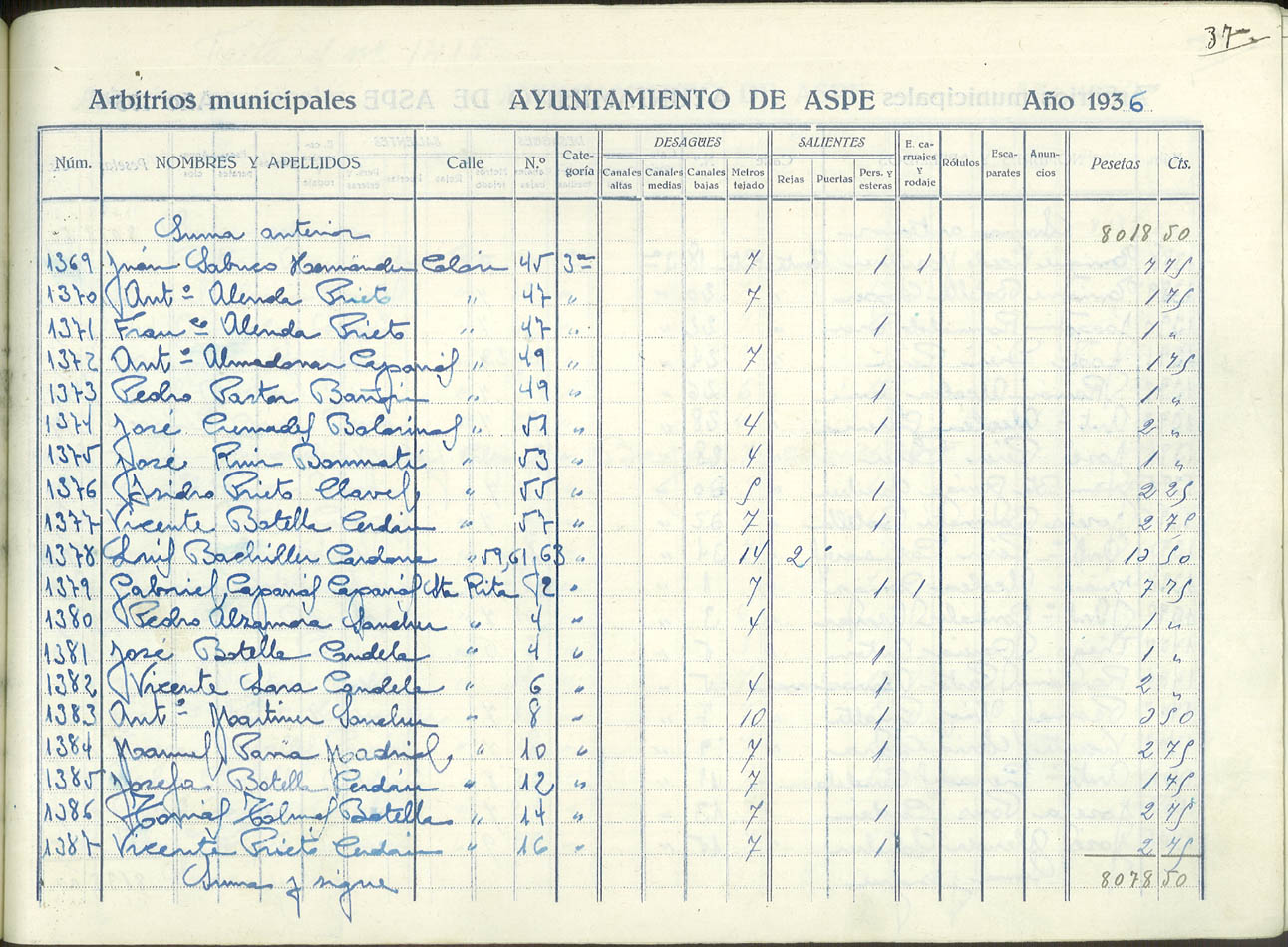 Padrón de personas sujetas al pago de arbitrios municipales, 1936