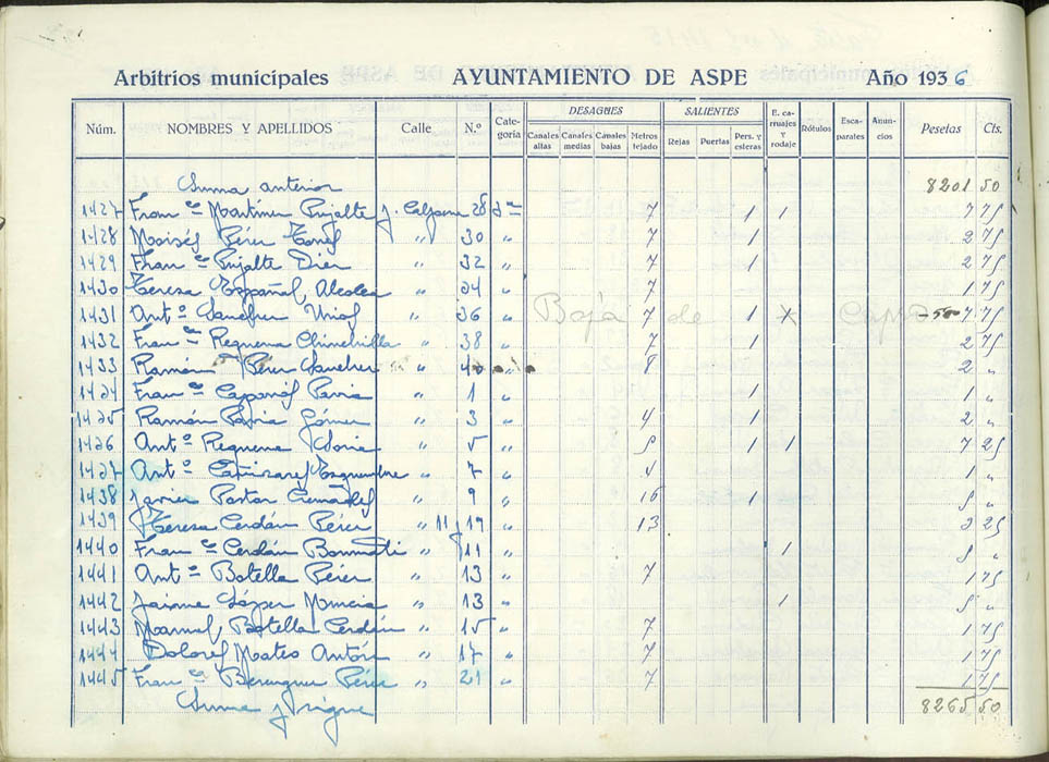 Padrón de personas sujetas al pago de arbitrios municipales, 1936
