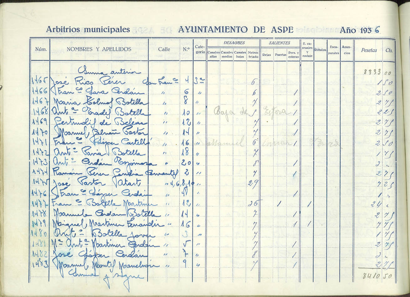Padrón de personas sujetas al pago de arbitrios municipales, 1936