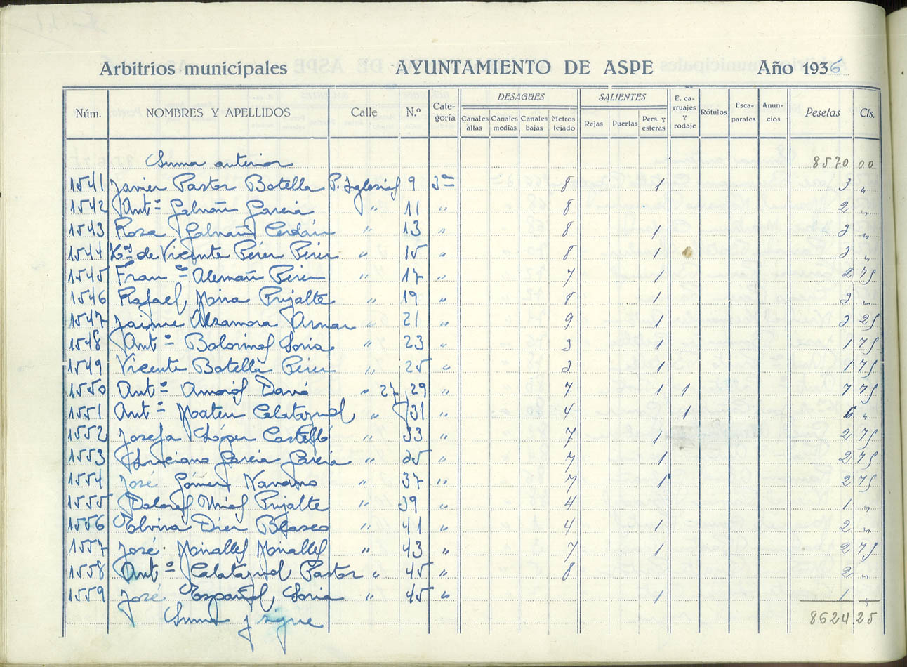 Padrón de personas sujetas al pago de arbitrios municipales, 1936
