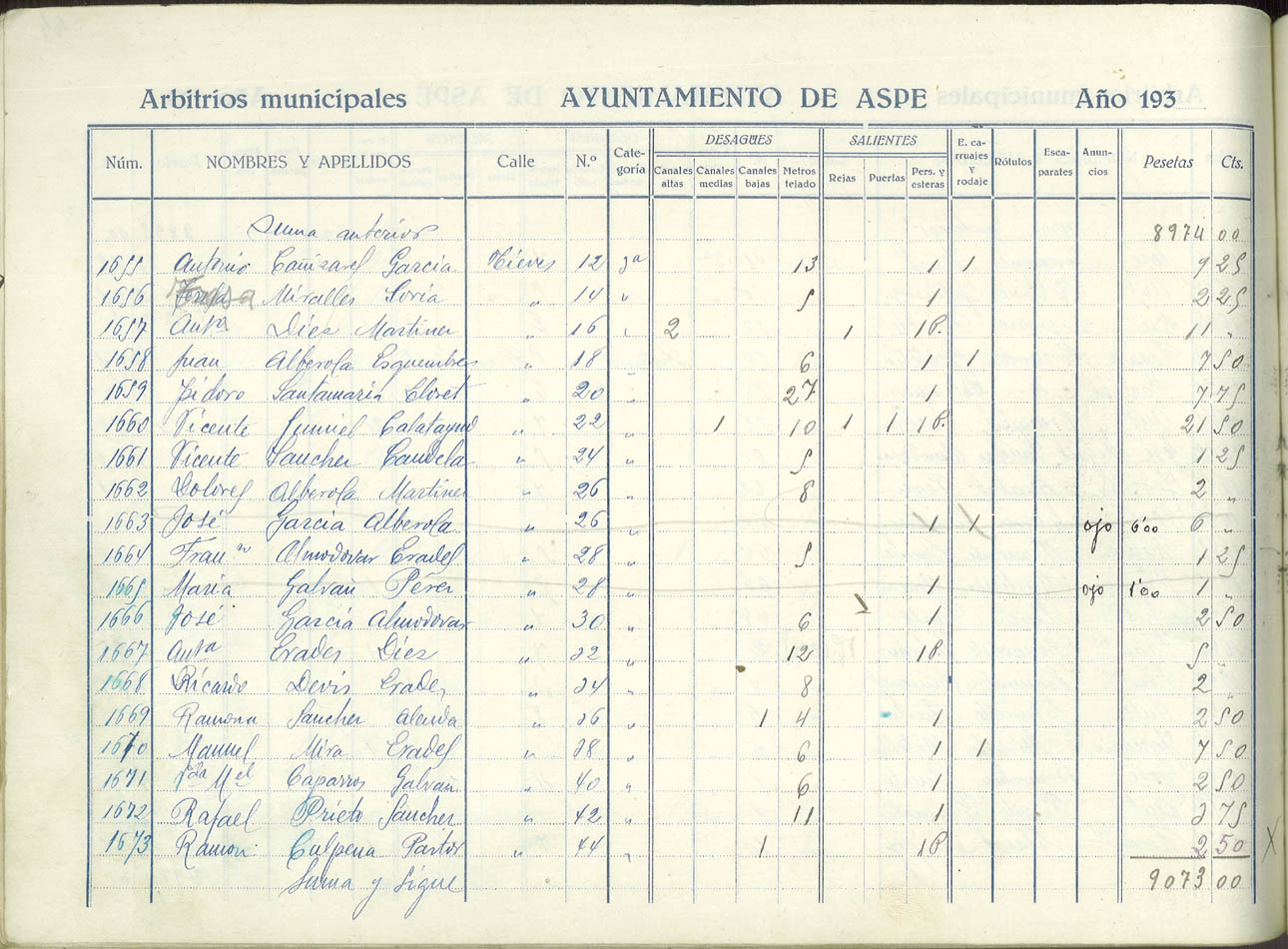 Padrón de personas sujetas al pago de arbitrios municipales, 1936