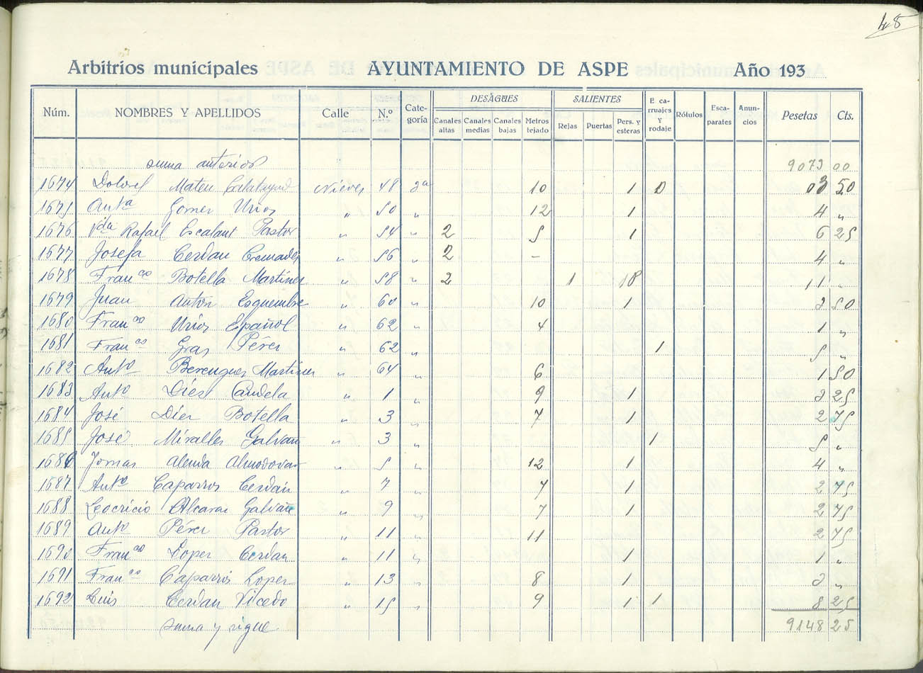 Padrón de personas sujetas al pago de arbitrios municipales, 1936