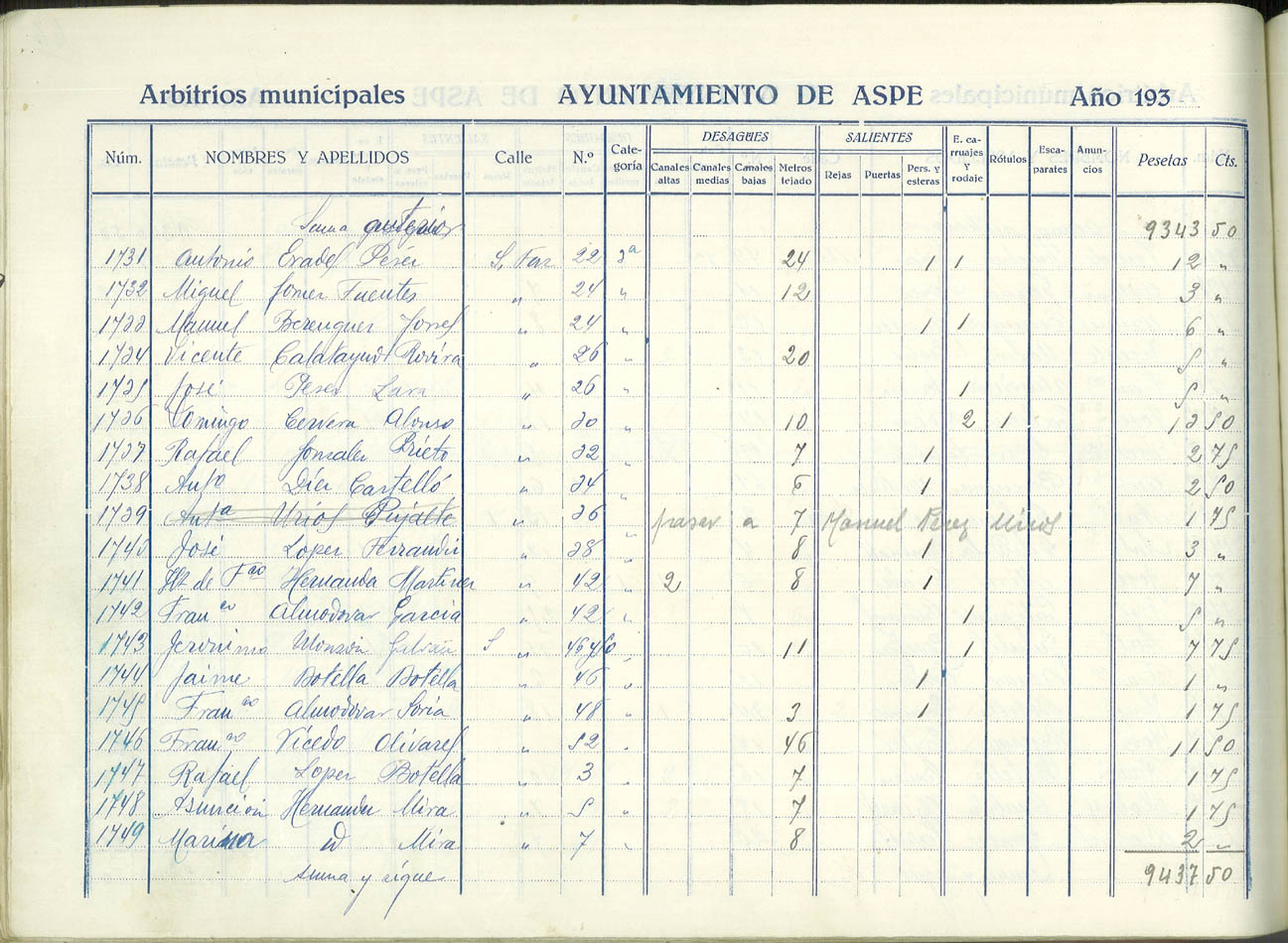Padrón de personas sujetas al pago de arbitrios municipales, 1936