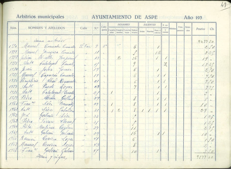 Padrón de personas sujetas al pago de arbitrios municipales, 1936