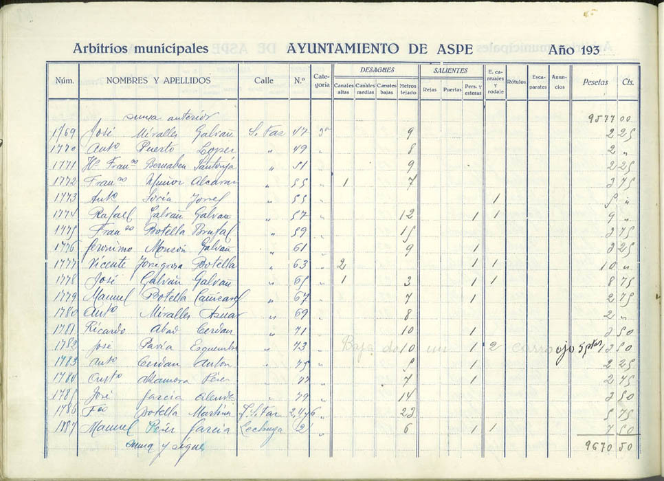 Padrón de personas sujetas al pago de arbitrios municipales, 1936