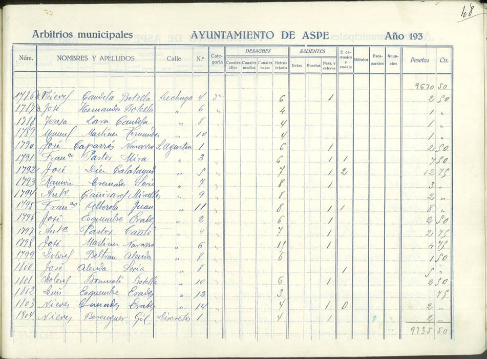 Padrón de personas sujetas al pago de arbitrios municipales, 1936