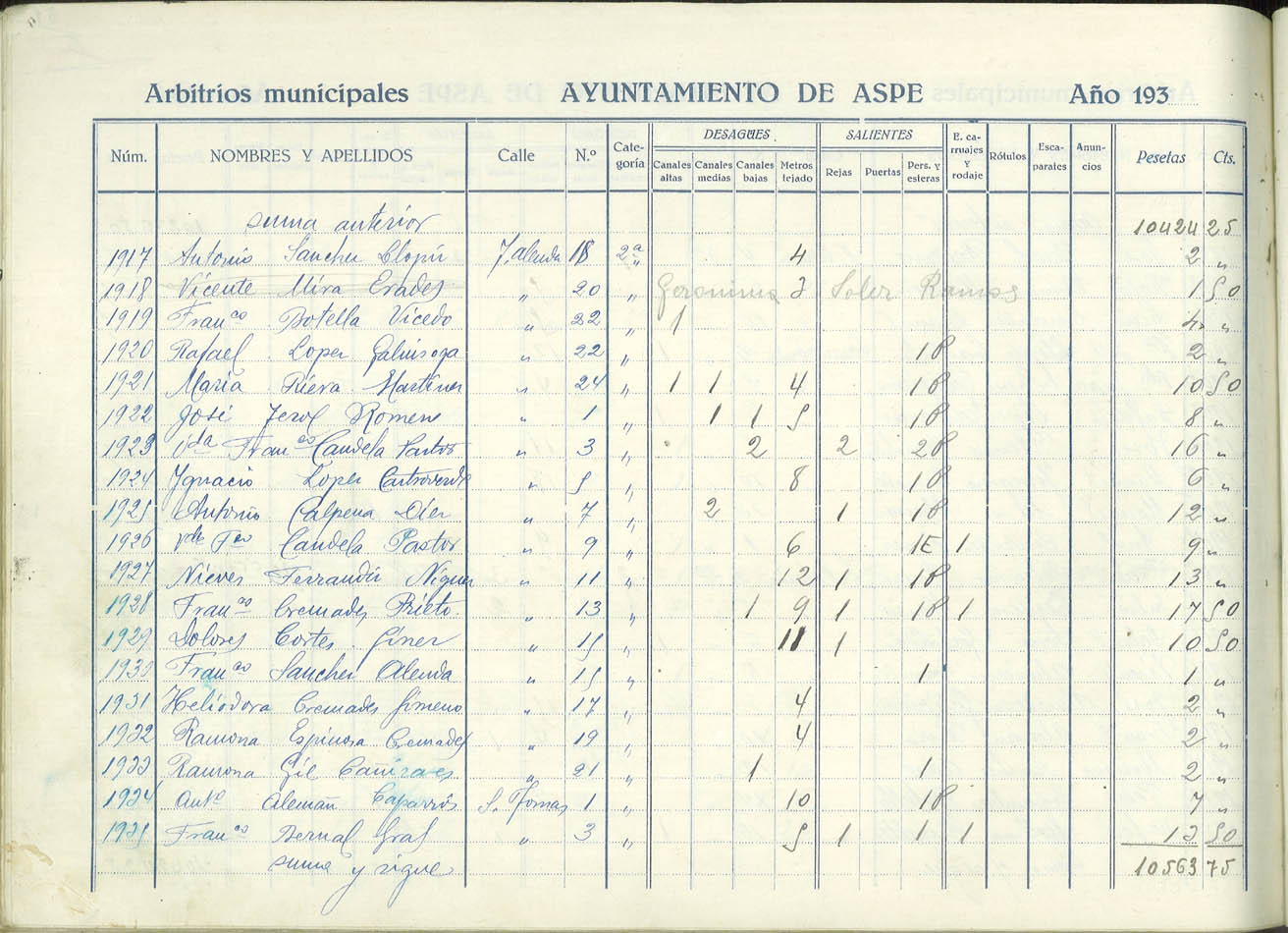Padrón de personas sujetas al pago de arbitrios municipales, 1936