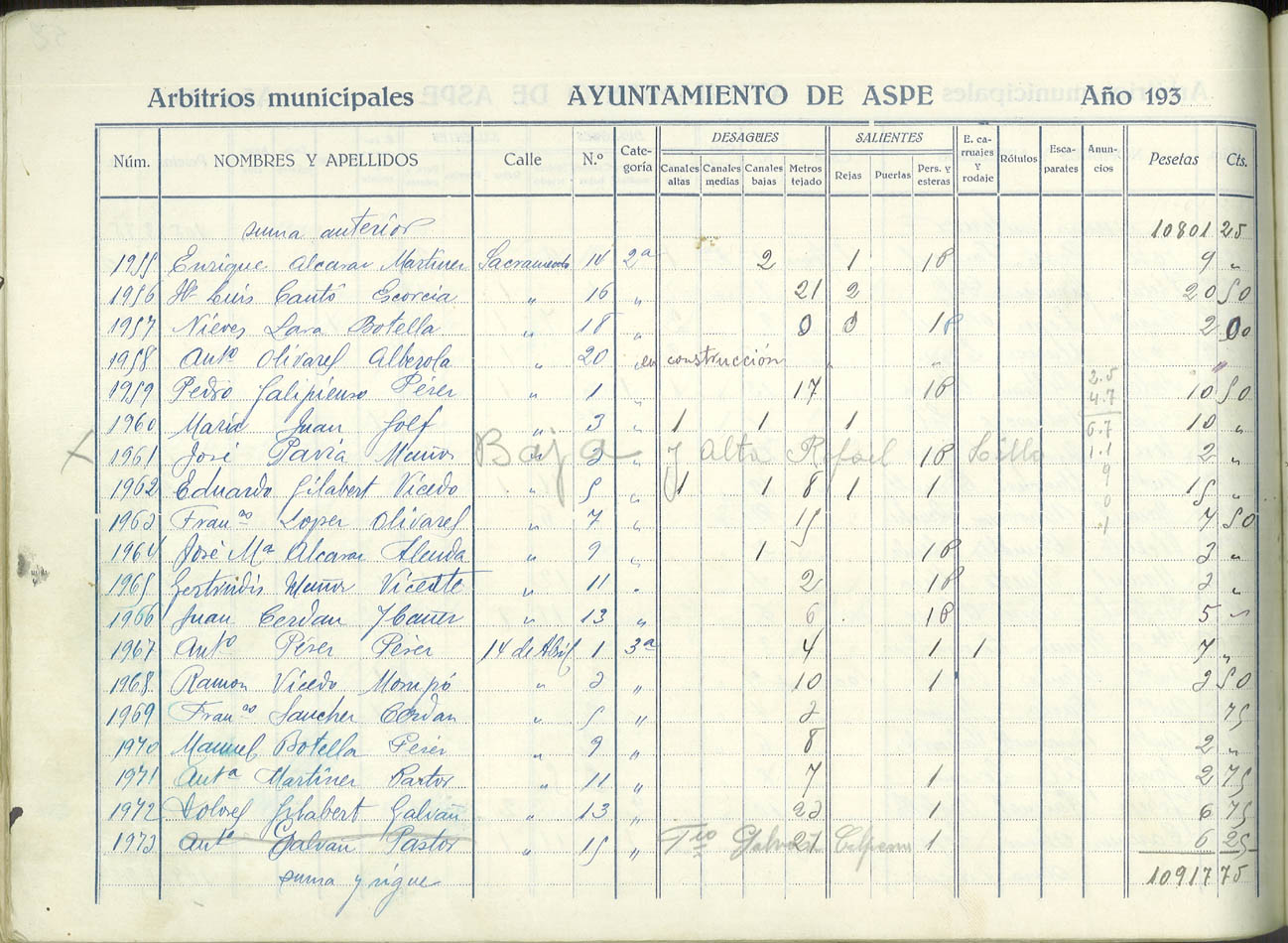Padrón de personas sujetas al pago de arbitrios municipales, 1936