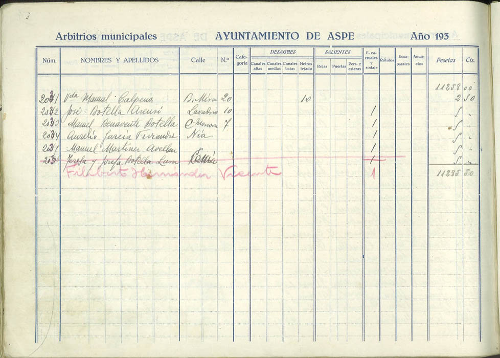 Padrón de personas sujetas al pago de arbitrios municipales, 1936