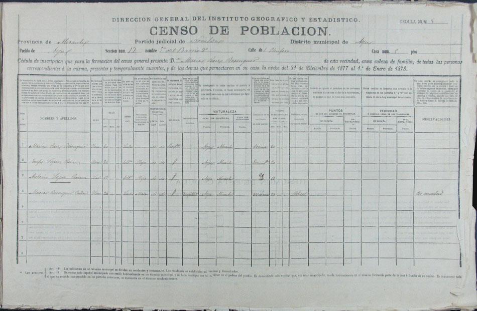 Hojas declaratorias por familias y Padrón de habitantes, 1877