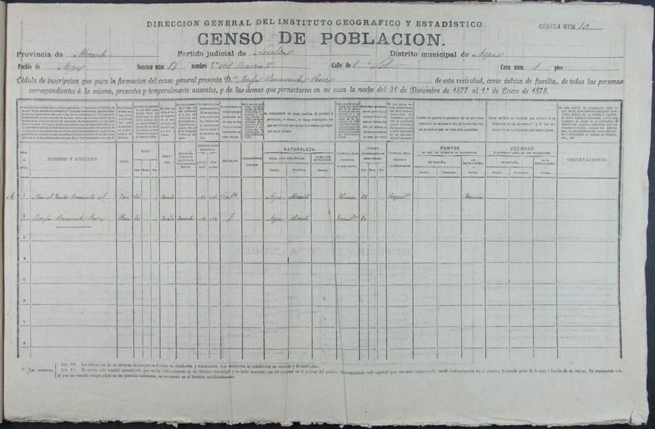 Hojas declaratorias por familias y Padrón de habitantes, 1877