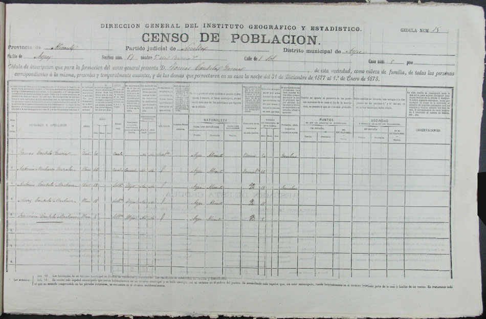 Hojas declaratorias por familias y Padrón de habitantes, 1877
