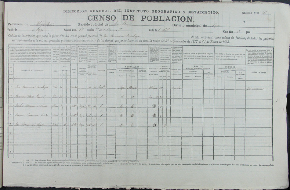 Hojas declaratorias por familias y Padrón de habitantes, 1877
