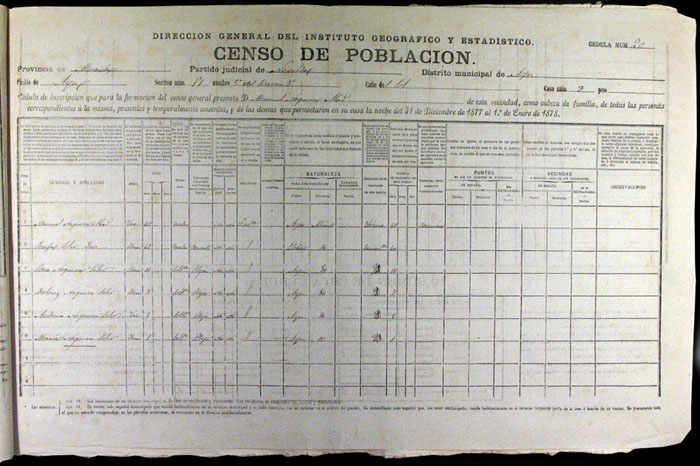 Hojas declaratorias por familias y Padrón de habitantes, 1877