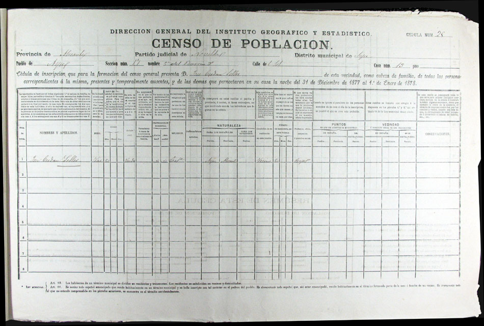Hojas declaratorias por familias y Padrón de habitantes, 1877