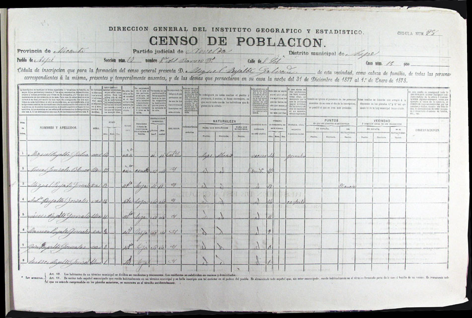 Hojas declaratorias por familias y Padrón de habitantes, 1877