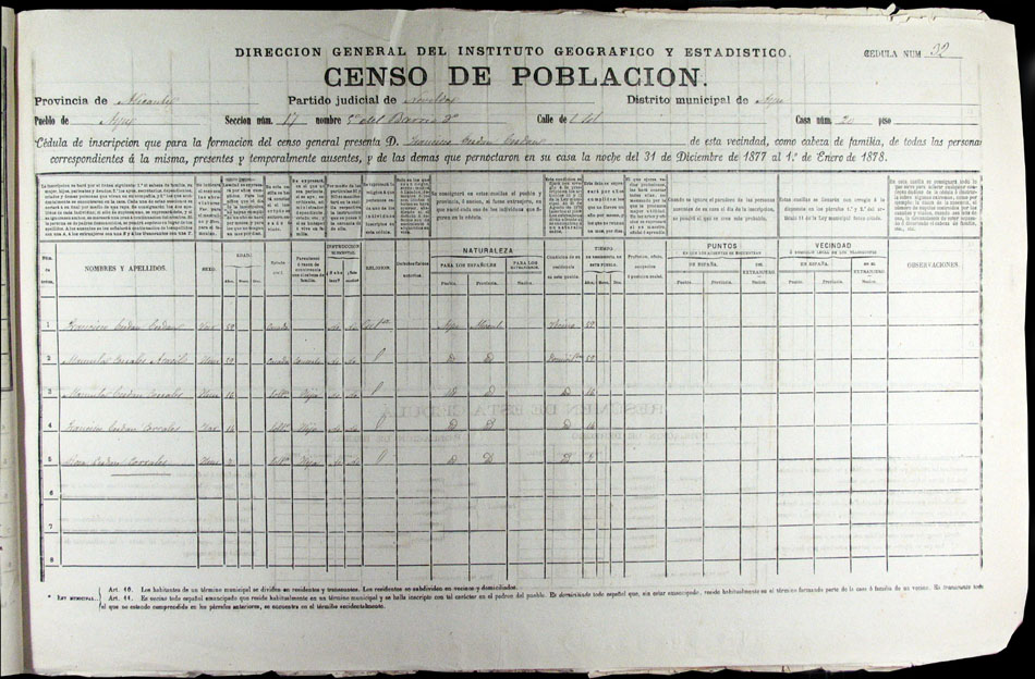 Hojas declaratorias por familias y Padrón de habitantes, 1877