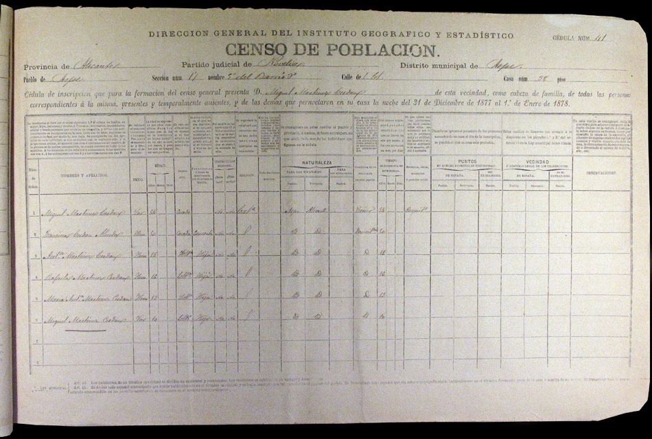 Hojas declaratorias por familias y Padrón de habitantes, 1877