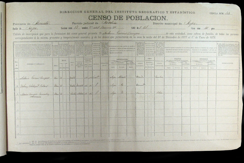 Hojas declaratorias por familias y Padrón de habitantes, 1877