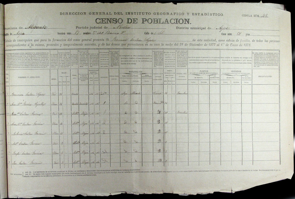 Hojas declaratorias por familias y Padrón de habitantes, 1877