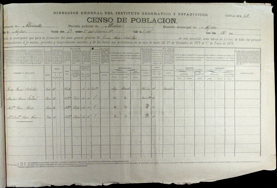 Hojas declaratorias por familias y Padrón de habitantes, 1877