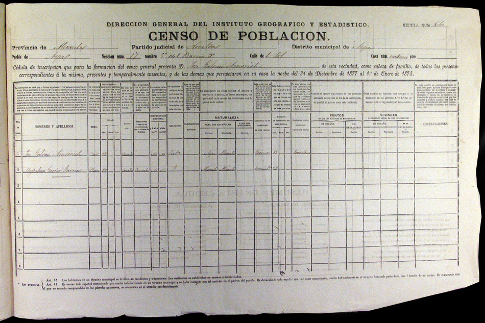 Hojas declaratorias por familias y Padrón de habitantes, 1877