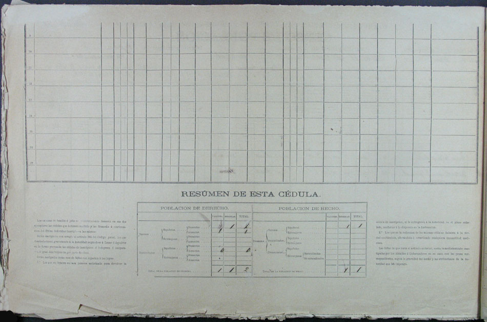 Hojas declaratorias por familias y Padrón de habitantes, 1877