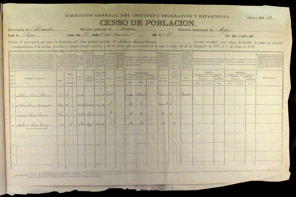 Hojas declaratorias por familias y Padrón de habitantes, 1877