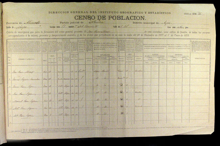 Hojas declaratorias por familias y Padrón de habitantes, 1877