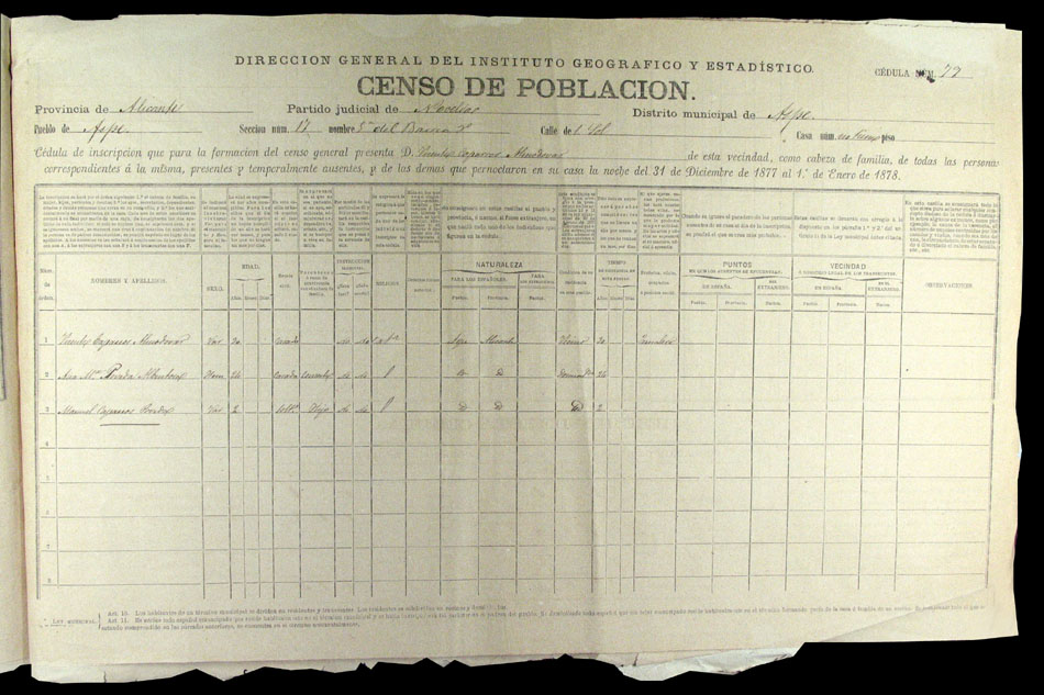 Hojas declaratorias por familias y Padrón de habitantes, 1877