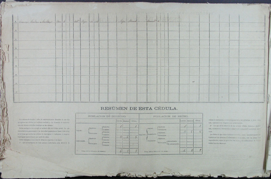 Hojas declaratorias por familias y Padrón de habitantes, 1877