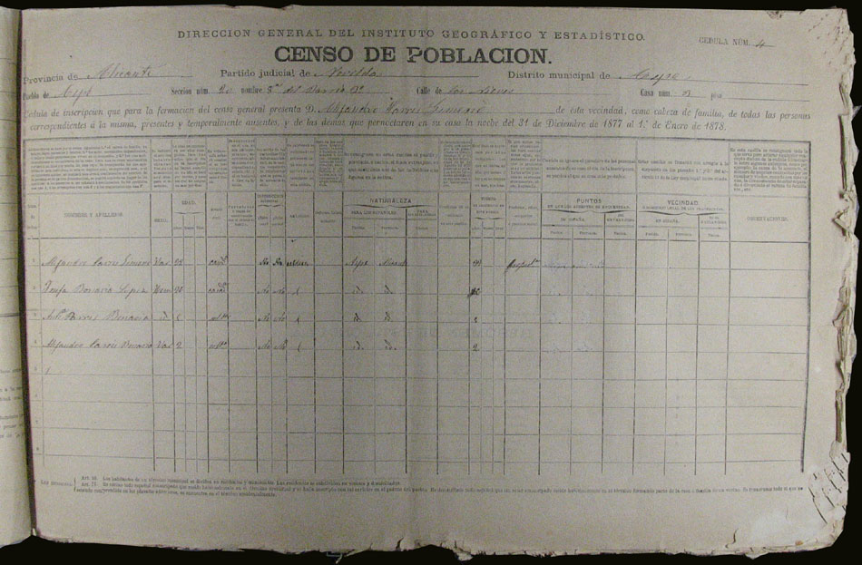 Hojas declaratorias por familias y Padrón de habitantes, 1877