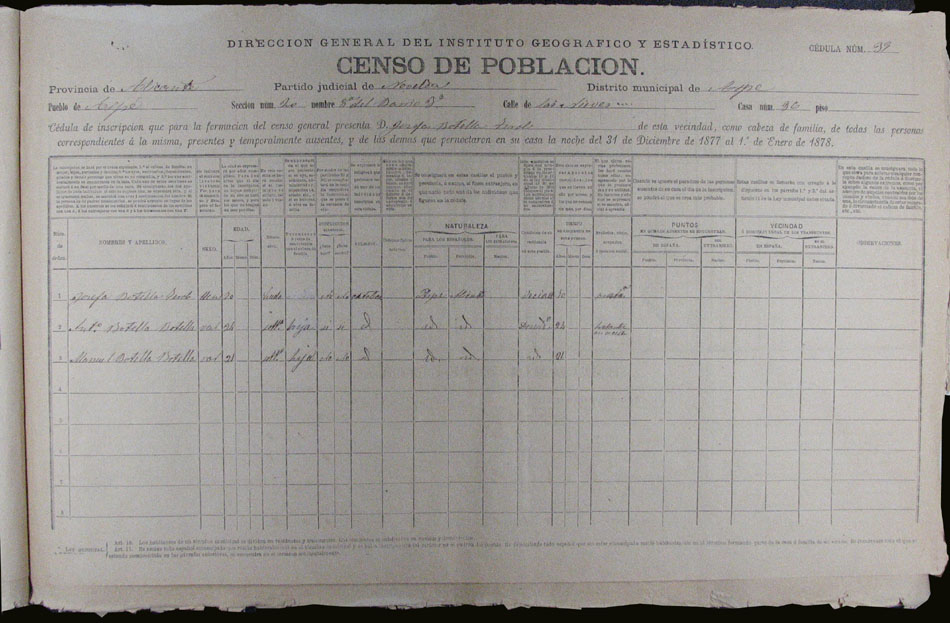 Hojas declaratorias por familias y Padrón de habitantes, 1877
