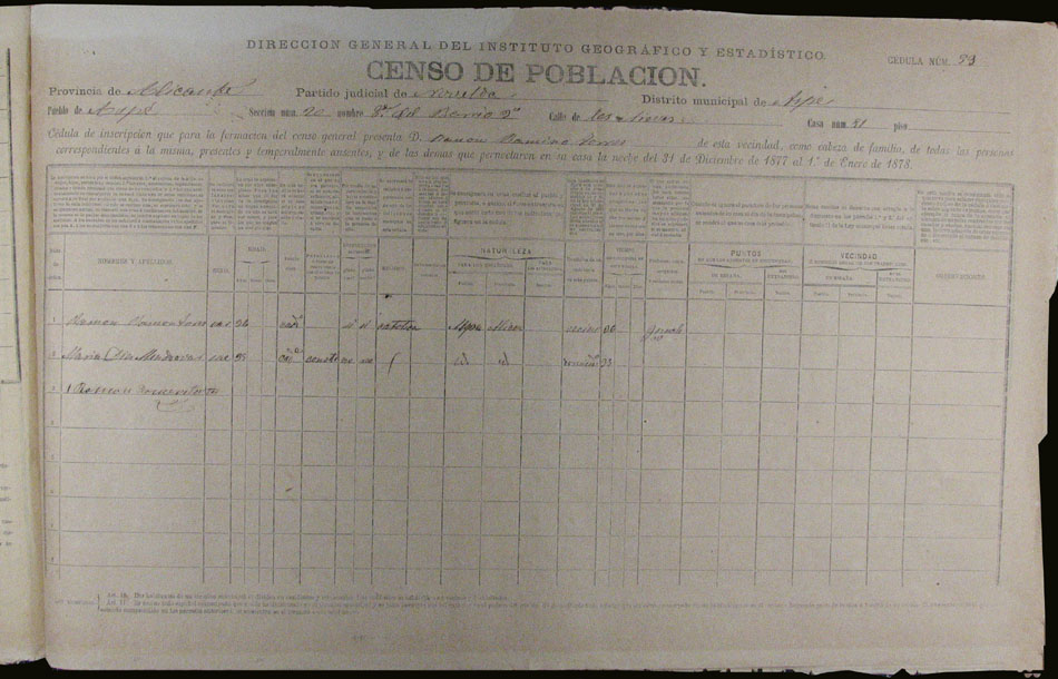Hojas declaratorias por familias y Padrón de habitantes, 1877