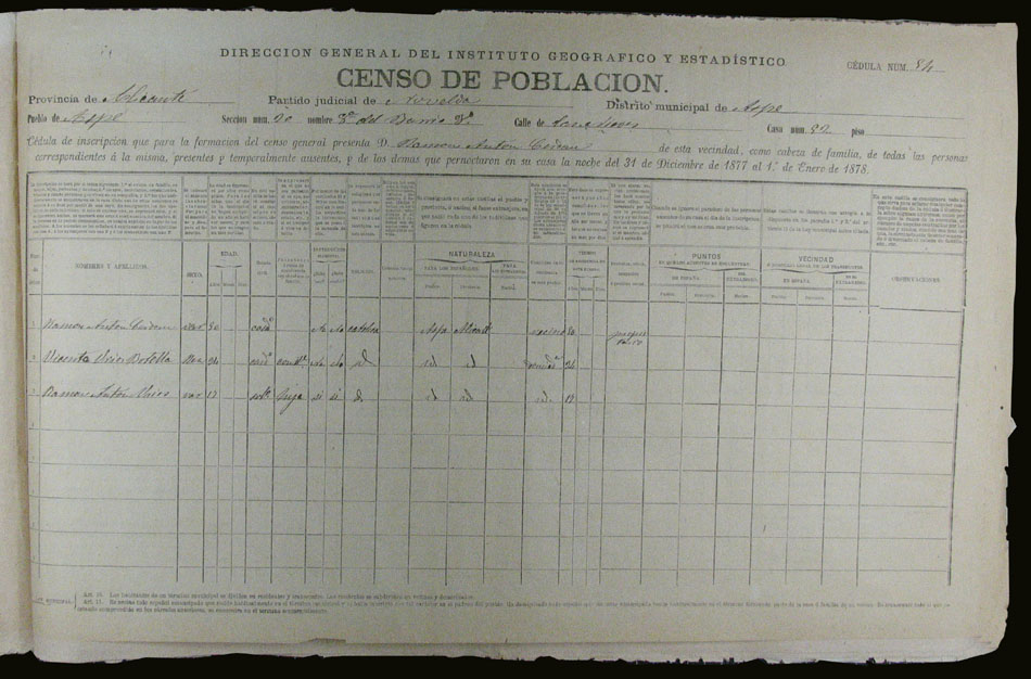 Hojas declaratorias por familias y Padrón de habitantes, 1877