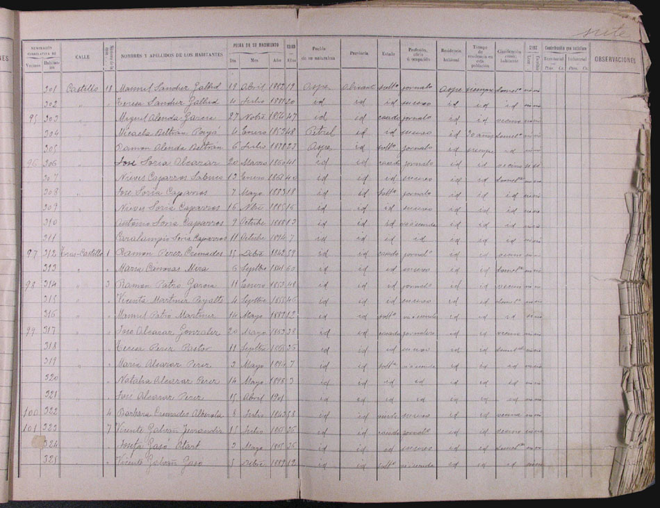 Hojas declaratorias por familias y Padrón de habitantes, 1877