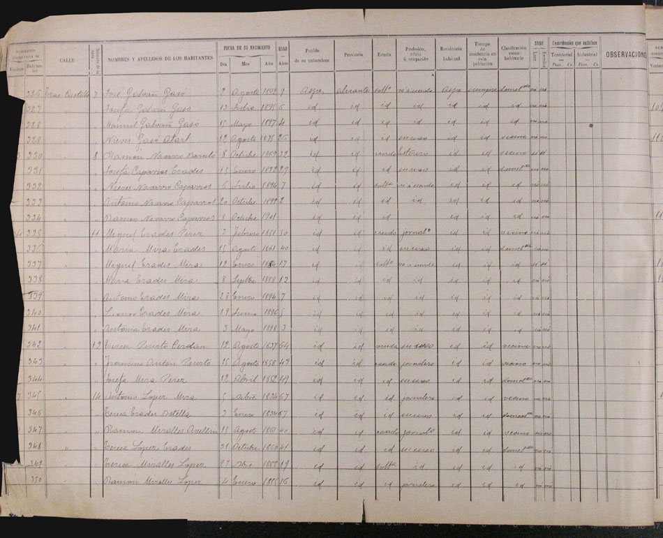 Hojas declaratorias por familias y Padrón de habitantes, 1877