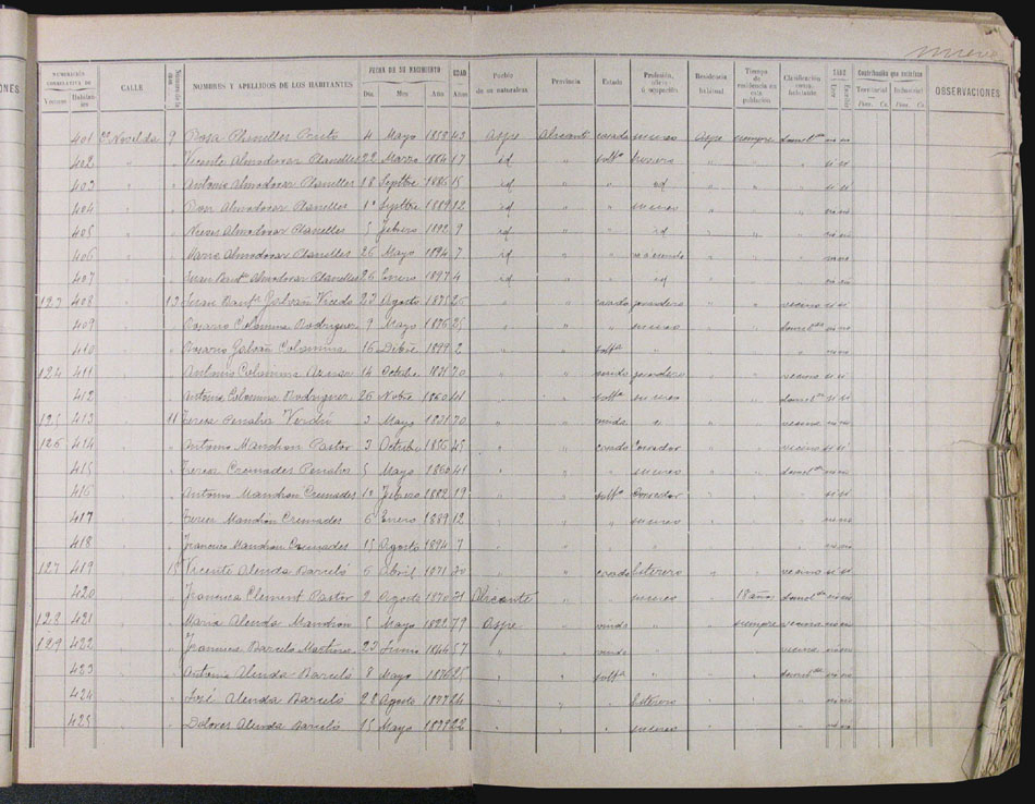 Hojas declaratorias por familias y Padrón de habitantes, 1877